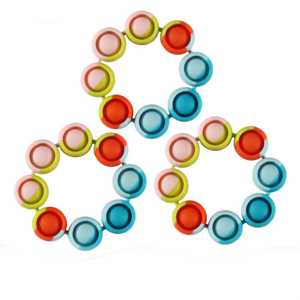 Bracelet pop it is a colorful elastic bracelet with beads that can be popped in and out of the band. It is a stress relief toy, fidget toy, and sensory toy for adults, kids, and anyone who enjoys popping beads. Bracelet pop it is great for anxiety, focusing attention, increasing focus, and concentration. There are two ways to play: the basic “pop” (tug) or “flip” (twist). Comfortably fits all sizes of hands.