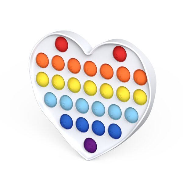 Wholesale Pop It Sensory Bubble Fidget Toys with the Circle and Heart shape. The Heart Pop it Sensory Bubble Fidget Toys come in different shapes and colors with 26 English Letters, good for teaching as well.